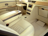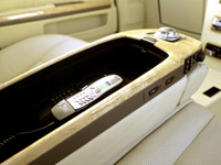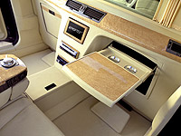 • Средняя напольная консоль со встроенным факсимильным аппаратом между задними сидениями и перегородкой. Отделка кожей и деревом