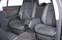 Средняя напольная консоль со встроенным факсимильным аппаратом между задними сидениями и перегородкой. Отделка кожей и деревом